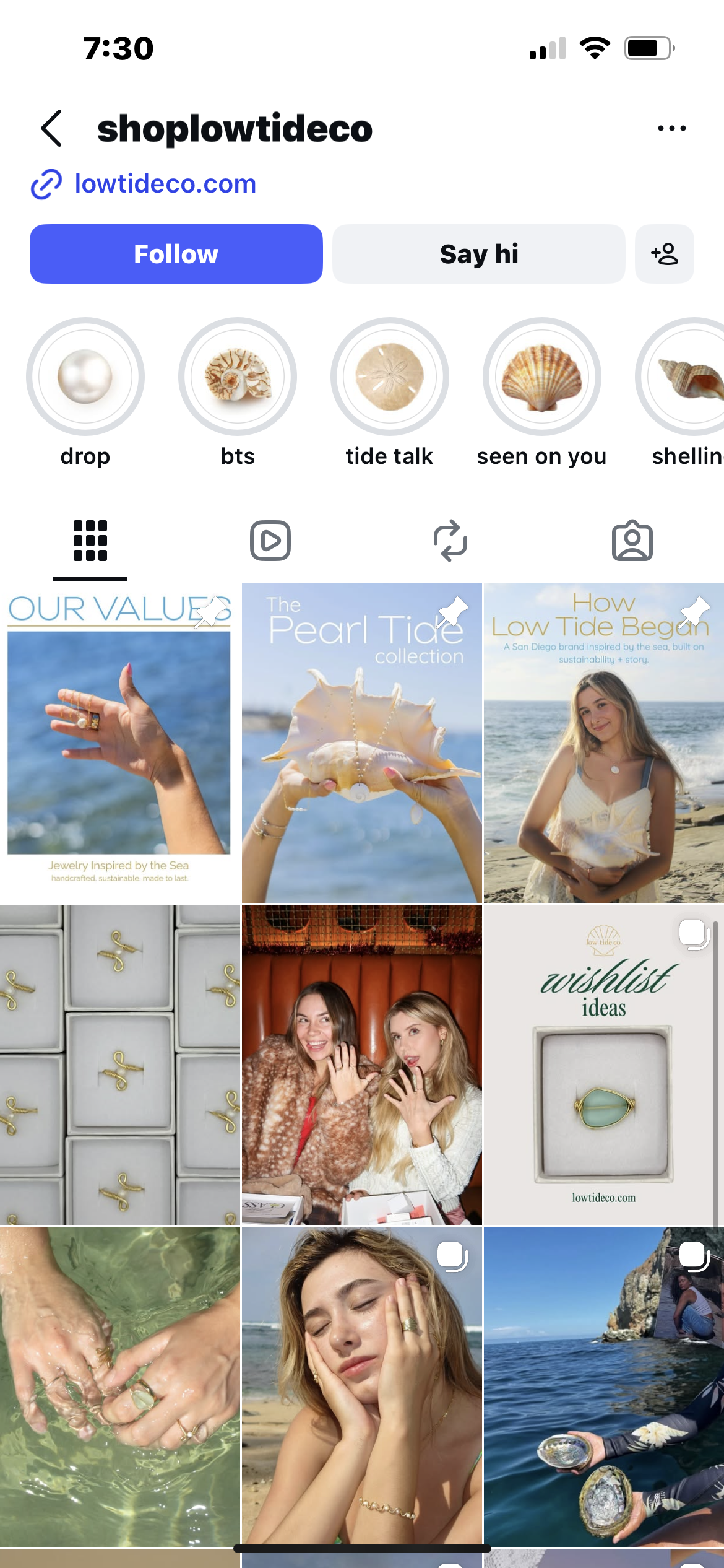 Low Tide Co is a San Diego coastal jewelry brand. I supported the brand’s social media by creating content, establishing visual direction, and improving posting consistency.