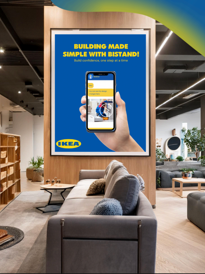 In-store posters capture shopper attention and introduce IKEA Bistånd before purchase, reinforcing IKEA’s commitment to customer satisfaction and innovation.