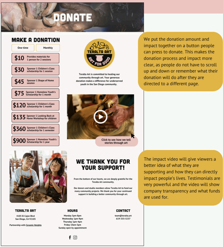 Helped design an updated donation page pairing dollar amounts with specific impact outcomes and integrated a testimonial-based impact video based on survey findings